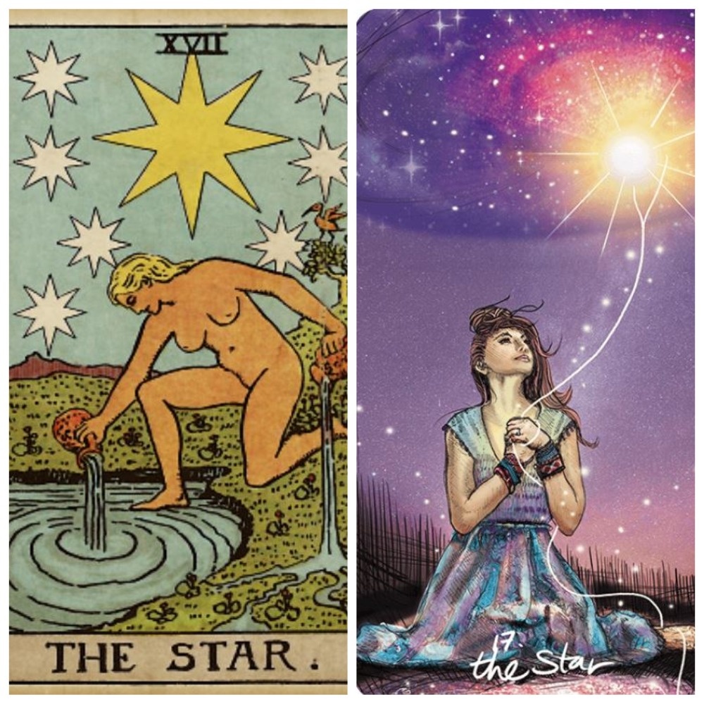 Это говорит о главном качестве аркана: надежда, вера и движение в направлении к своей звезде обязательно приведут к светлому будущему. Вода из кувшинов – это поток жизни, который питает и душу, и тело.