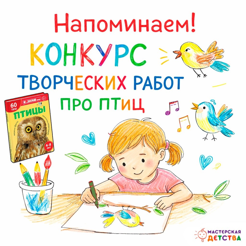 Друзья, продолжаем принимать работы на наш творческий конкурс про птиц 🐥 Времени ещё достаточно, но лучше не откладывать. Задание простое: предложите ребёнку изобразить любую птицу как захочется. Рисунок, аппликация или необычная поделка — подойдёт всё. Можно использовать любые материалы: от красок до макарон 📆 Работы принимаются до 10 апреля 2026 года 🎁 Победителя ждут: — книга «Птицы» в подарочном комплекте — возможность увидеть свою работу в печатной раскраске Если давно хотели что-то поделать вместе — это отличный повод ✨ 🔗 Подробности ➡️ Подать заявку #МастерскаяДетства
