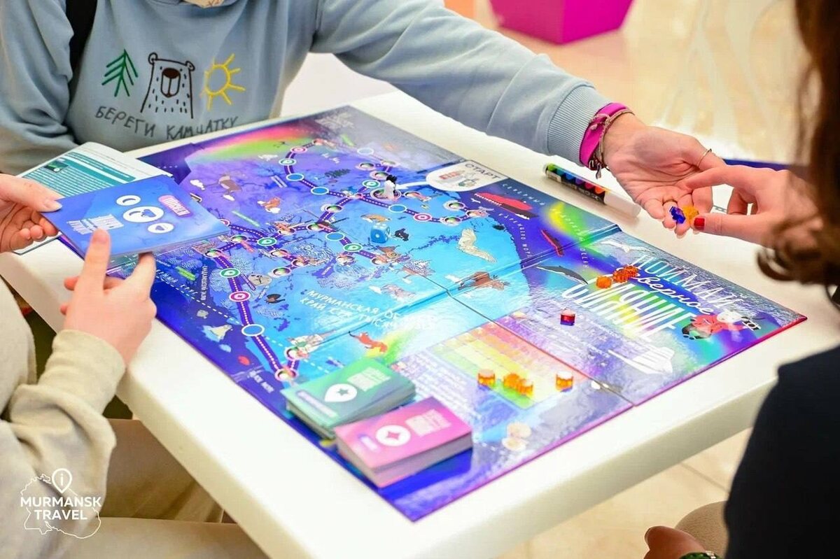 » Эта игра вызывает ажиотаж на всех мероприятиях Туристского информационного центра Мурманской области! Именно по ней проходят турниры на Murmansk.Travel MARKET Цель игры: посетить максимальное количество туристических объектов и сфотографировать их, а также сделать снимки северного сияния! У каждого игрока есть только 8 кадров и израсходовать их нужно с максимальной эффективностью. Игра продолжается условный месяц, где один день равен одному раунду. По понедельникам игроки получают метеосводку солнечной активности на ближайшую неделю. Участник сам определяет стратегию игры и принимает решение, в каком направлении двигаться на игровом поле. По пути могут встречаться точки «События» и «Достопримечательности». Если участник встал на какую-либо из этих клеток, то он тащит карту из соответствующей колоды. Это может помочь заработать дополнительные баллы, дать новые кадры, а может и усложнить жизнь. Игра займет 30 - 50 минут. Приобрести игру можно в офисе Туристского информационного ц