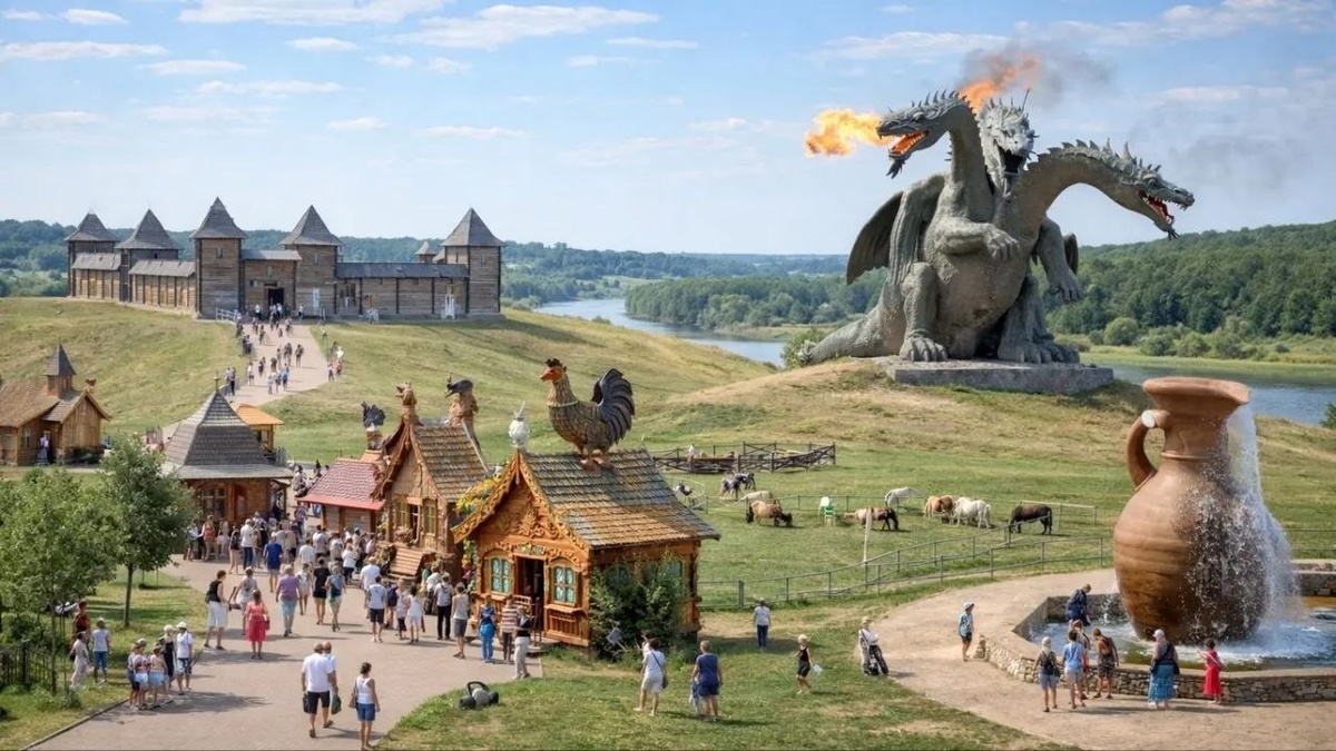 🐉 Парк находится на берегу Дона, в Липецкой области. Ехать не пять минут, но формат скорее мини‑путешествия на выходные, чем просто прогулка. Главная звезда — огромный Змей Горыныч. По пятницам, субботам и воскресеньям вечером он извергает пламя. Выглядит эффектно, особенно в сумерках. Дети обычно замирают, взрослые снимают на телефоны. Территория большая и ухоженная. Есть Сафари край с редкими животными, лошади, прокат велосипедов, архитектурные объекты, чайный домик, купель и источник. Плюс детские площадки — можно спокойно провести целый день без ощущения перегруза. Если планировать поездку с ночёвкой, на территории сдают беседки и бани. Формат подойдёт для семейного уикенда с друзьями — красиво, просторно, воздух совсем другой. ⏰ Ежедневно 10:00–20:00 📍 Село Каменка, Задонский район, Липецкая область (9 км от М4 Дон) Координаты: 52.367000, 38.760000 Я бы закладывала целый день и приезжала ближе к обеду, чтобы остаться на вечернее шоу с огнём 🔥