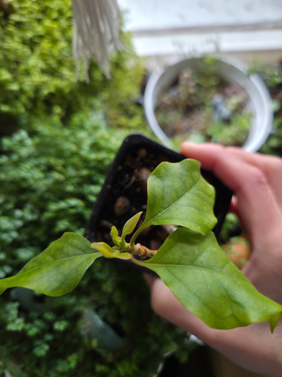 Быстро, на Авито. Не без "приключений". Не удивлена, ха-ха. Но в итоге всё ок. Это та самая очень слабенькая, у которой я осенью удаляла... бутоны! Едва они начали окрашиваться. Не дала ей цвести, пресекла это прекрасное намечающееся. Т.к. была почти уверена, что цветение "в зиму" эту малявку бугенвиллею погубит. Ведь цветению растения отдают немало сил, это знают, пожалуй, почти все увлеченные растительностью. Этот саженец я в прошлом году даже на продажу не ставила, хотя опоздавшая желающая спрашивала, не осталось ли. Нет, результат был бы предсказуем. Если отдать слабенькую кроху человеку, не слишком опытному в выращивании бугенвиллей, да ещё и накануне зимы, то ничего хорошего наверняка не получится. Более того, я сама не была уверена, что зимовка под моим присмотром пройдет благополучно. Но... Уже в середине зимы стало понятно, что дело с единственным "прошлогодним" саженцем явно пошло на лад. Фото ещё до первой подкормки: Потом меня почти удивило, что проснулись почки, точнее, с