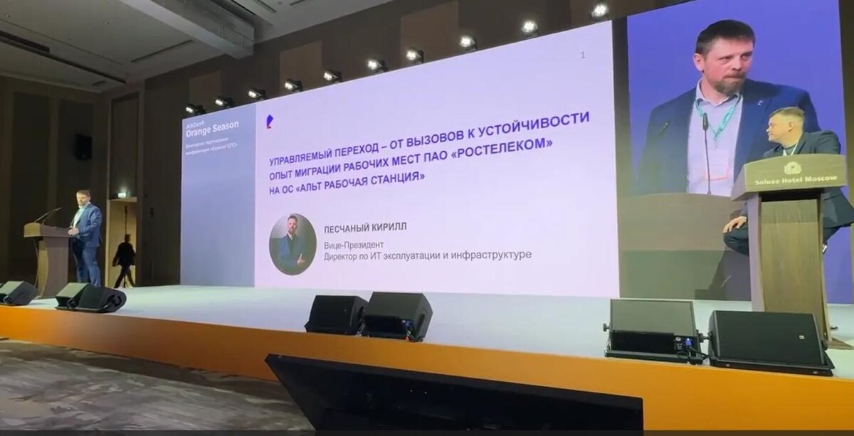 Об этом на четвертой партнерской конференции AltConf: Orange Season рассказал вице-президент, директор по ИТ-эксплуатации и инфраструктуре ПАО «Ростелеком» Кирилл Песчаный В 2025 году более 60 тыс. устройств ПАО «Ростелеком» было переведено на операционную систему ОС «Альт Рабочая станция», уточнил он Аудиторская проверка по выполнению ФКПЭ (функциональные ключевые показатели эффективности, — ред.) 2025 года успешно завершена Также Кирилл Песчаный отметил, что очень обеспечить сотрудникам комфортное обучение с новым ПО. У нас лучше всего зашли комиксы. Большие инструкции перестали читать, еще когда я учился в вузе. Много текста, всё есть, но очень сложно. Переводя это в комиксы для каждого события, которое нужно реализовать в системе, мы привлекаем внимание. Это короткий материал, который помогает человеку освоить что-то новое и незнакомое По словам топ-менеджера, ещё одним важным моментом стало то, что «Ростелеком» при переходе на отечественный софт собрал фокус-группу из предста
