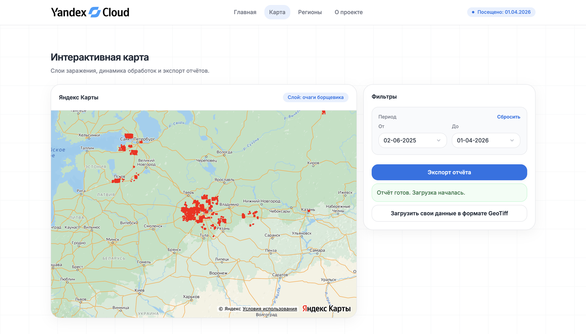 Инструмент протестировали волонтеры: общая площадь выявленных заражений в 17 регионах европейской части страны составила 421 гектар. В Тверской области площадь обнаруженных очагов, по данным на 1 апреля 2026 года, составляет 21 тысячу квадратных метров.