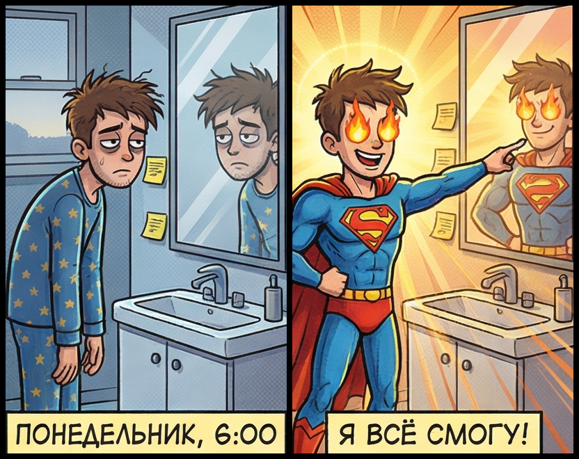 Но для меня, увы, это не просто мем. Это документальная хроника моей жизни, разбитая на кадры. История человека, чей мозг генерирует идеи, а потом сам же от них выгорает.