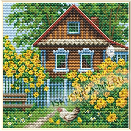 Сюжет переносит в деревню, где слышно пение птиц и шорох листвы, а воздух наполнен солнцем и свежестью. Вышивая эту работу, Вы будете буквально собирать по крестикам ощущение уюта и ностальгии.