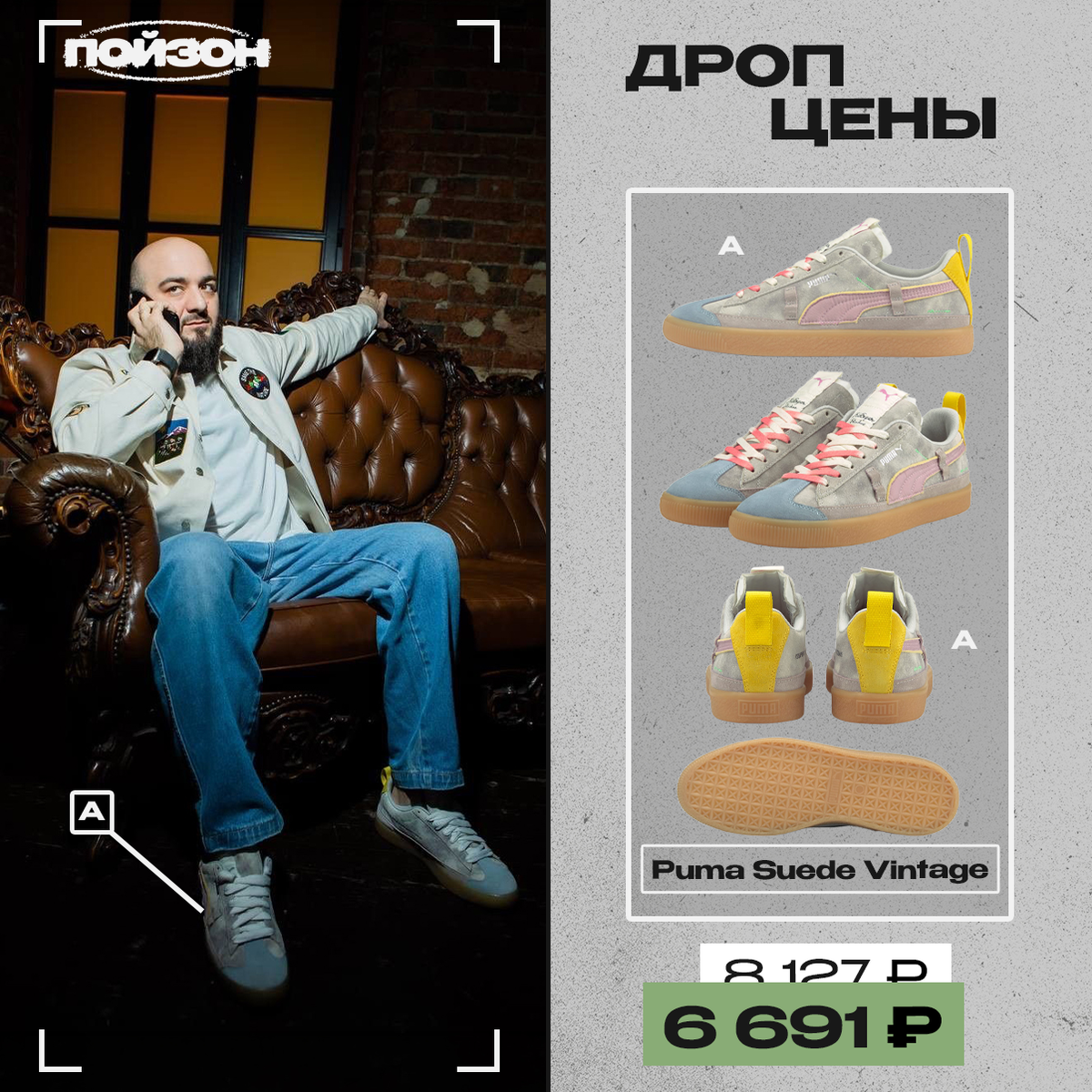 Комикам важен не только юмор, но и комфорт. Puma Suede Vintage идеально подходят для этой цели. Тоже засматриваемся на них. Айтем в «Дроп ценах», стоимость актуальна только сегодня. Puma Suede Vintage, цена от 6 691₽* (вместо 8 127₽) *стоимость может изменяться в зависимости от курса и размера Больше интересного на нашем сайте POIZON