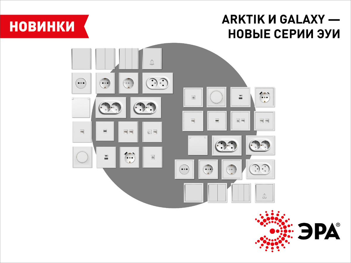 Компания ЭРА выпустила две новые серии ЭУИ — Arktik и Galaxy Новинки стали отражением актуальных запросов покупателей и современных интерьерных трендов. ЭРА Arktik и ЭРА Galaxy — это электроустановочные изделия с востребованным сегодня минималистичным дизайном, ультратонкими рамками и продуманной функциональностью. Обе линейки ориентированы на широкий круг задач в жилых и коммерческих интерьерах. Для них подобрана универсальная цветовая палитра из восьми классических оттенков: белый, слоновая кость, серебро, шампань, антрацит, графит, титан и белый матовый. Такие цвета легко сочетаются с отделочными материалами и позволяют подобрать решение под разные стили оформления помещений. При всех своих преимуществах новинки являются более доступными по цене, чем аналоги на рынке, что делает их привлекательными и для конечного покупателя, и для компаний, занимающихся строительством и ремонтом. Серия ЭРА Arktik станет оптимальным решением для интерьеров в стиле минимализм, хай-тек и эко. Отсутств