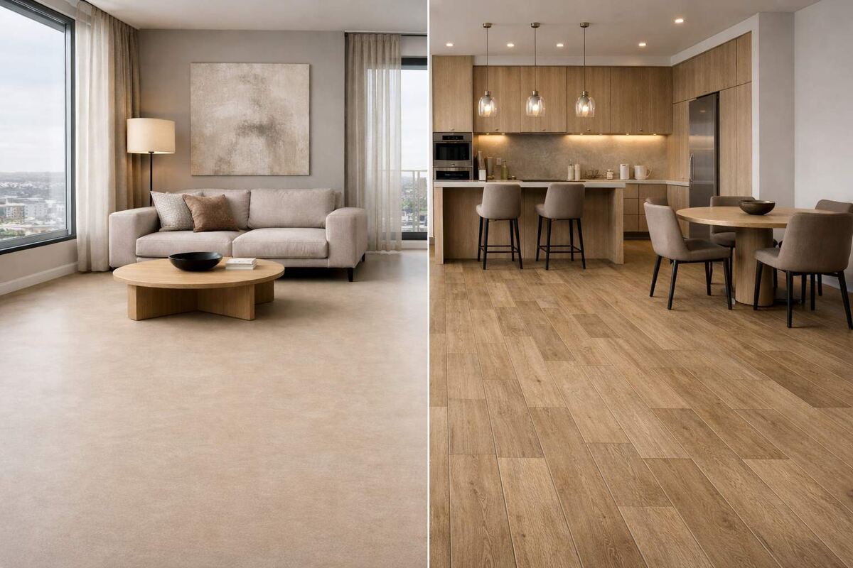 В такой ситуации важно сначала оценить объём подготовки основания. Для ПВХ плитки требования к ровности часто строже, и это может заметно увеличить бюджет.