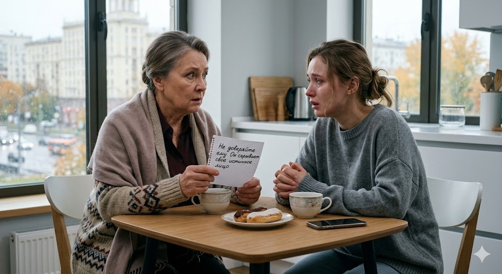 А вот Аня… Елена Владимировна только сейчас осознала, какой отстраненной и бледной была невестка. Раньше Аня звонко смеялась, ее глаза сияли, когда она смотрела на мужа. Вчера же она походила на красивую фарфоровую куклу с пустым взглядом. Когда пришло время прощаться, Аня обняла свекровь. Ее руки были ледяными. Именно в этот момент, прижавшись к Елене Владимировне, она незаметно сунула ей в карман кардигана эту записку.
