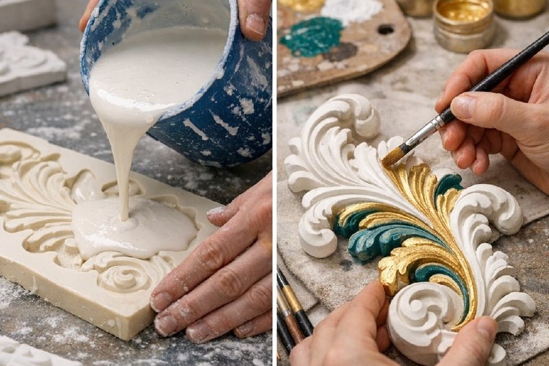Я, Алхимик-Хранительница из Севастополя, докажу вам обратное. В моей мастерской гипс превращается в оттенки неба, моря, крымских закатов. И каждый цвет — не случайный, он несёт определённую энергию и настроение. Я экспериментирую с цветом постоянно, и сегодня расскажу вам о своей «палитре». Меня зовут Оксана, и гипс для меня — живой материал. Как я подбираю цвет для каждой вещи Инженер во мне требует системности. Я составила таблицу соответствия цветов и задач. Например, глубокий синий я использую для блокнотов, которые помогают в анализе и стратегиях. Золотой — для тех, что связаны с изобилием и успехом. Зелёный — для успокаивающих, терапевтических артефактов (восточная серия). Тёплая охра — для творческих, вдохновляющих вещей. Но всегда оставляю место для интуиции: иногда гипс сам подсказывает, каким ему быть. В некоторых случаях, я добавляю пигмент прямо в жидкий гипс перед заливкой, чтобы цвет проникал вглубь. Тогда даже если сколется кусочек (а гипс может со временем получить микр