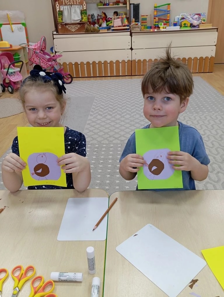 Аппликация с элементами рисования "Воробьи в лужах"