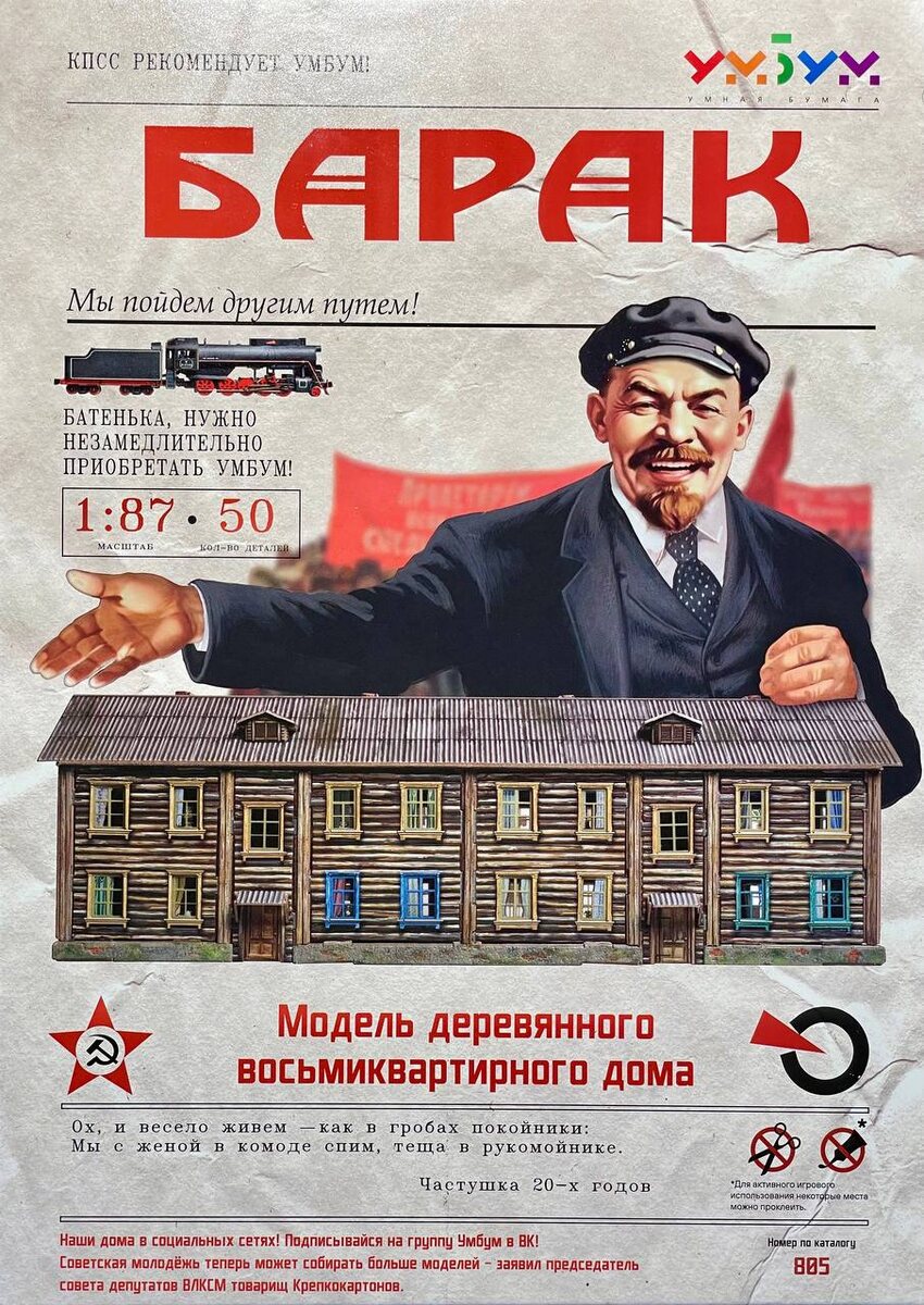 Приветствую! Давно я ничего не покупал от Умбум, как случайно наткнулся на Озоне на их сравнительно новый набор - советский барак. До этого (помимо сталинки и хрущёвки) Умбум также успел выпустить брежневку - модель панельного жилого дома. О нём я узнал ещё в прошлом году, но, к сожалению, на моей полке недостаточно места под высокую конструкцию, а вот для двухэтажного барака место вполне найдётся. Поэтому недолго думая, я заказал этот набор. Цена, к слову, адекватная - чуть больше 800 рублей. Заказ привезли быстро и поэтому откладывать сборку я не стал, сразу принявшись за дело.