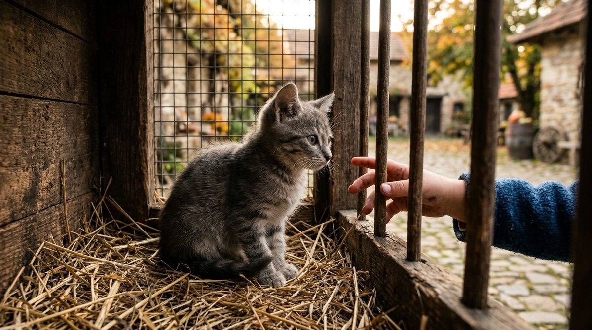 Котёнок не дёрнулся. Медленно повернул голову. Посмотрел на меня – без страха, без радости, без ожидания. Просто посмотрел. Я просунул палец сквозь прутья. Он не отпрянул. Понюхал – коротко, деловито. Осторожно лизнул: шершавый язык, чуть влажный, тёплый.