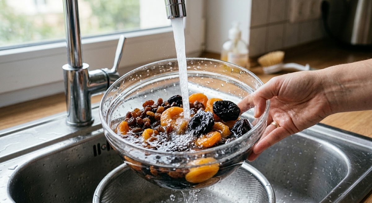 🔹 Способ 2. Замачивание в тёплой воде — для рыночных сухофруктов