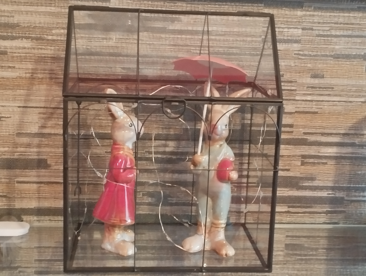 Не так давно в рубрике Женский клуб я показывала, как сделала вазу на ножке из товаров, купленных в Фикс-прайсе. В деревне этой вазе места не нашлось. А в городе она мне пригодилась. Я решила разместить в вазе ещё одну фигурку кроликов. У меня прямо дружная семейка получилась ). Мама с одним сыночком, папа - с другим)).