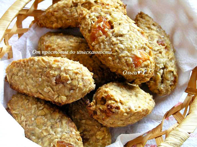 щепотка соли Приготовление: Бананы разомните вилкой в пюре, добавьте сахар, перемешайте. Всыпьте муку и измельченные хлопья, перемешайте. Добавьте мелко нарезанную курагу и соль. Хорошо перемешайте. С помощью 2х ложек сформируйте печенье, выложите на противень. застеленный бумагой для выпечки. Выпекайте при 200*С около 25 минут. Приятного аппетита! Вам также могут понравиться: