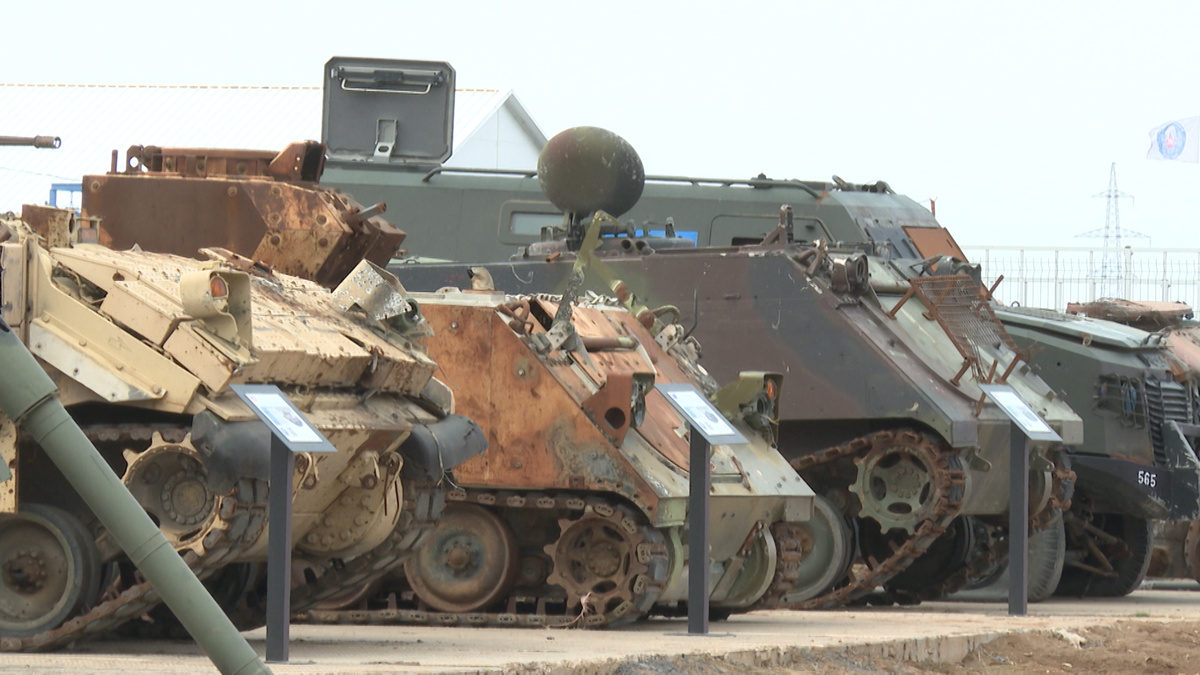 Новым трофейным экспонатом пополнилась выставка поверженной вражеской техники в Центре патриотического воспитания «Юный ястреб». Вниманию зрителей представлено 20 образцов военных машин войск НАТО, захваченных нашими бойцами на передовой. Выставка действует уже около года, и за это время ее посетили свыше четырех тысяч человек. «Видите, что все бронестекло разбито, сожжено, поплавлено внутри?». Еще недавно эта западная техника колесила по земле Донбасса. Сегодня поверженные нашими войсками машины – экспонаты трофейной выставки с говорящим названием «Зоопарк». Клетки для железного «зверья» не предусмотрены, хотя не помешали бы. «Это единственный выставочный центр на территории Волгоградской области, где представлена такая техника разных образцов и модификаций. Видно, кто с нами и против нас воюет. Одна из последних здесь представлена, ее привезли в марте месяце. Пушка в народе так называемая «Три топора», три семерки, американского происхождения», – говорит заместитель директора спортив
