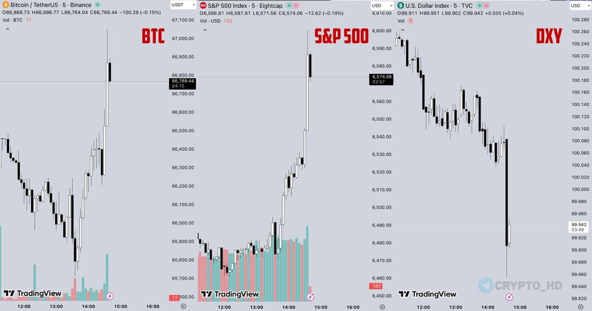 😳 BTC, S&P 500 и DXY в моменте.