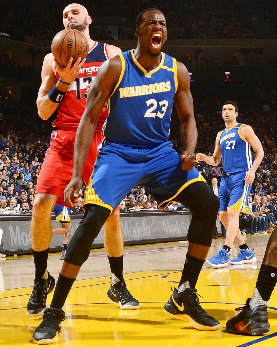 Стеф Карри разминается в PE-версии Nike от Дрэймонда Грина 2017 года