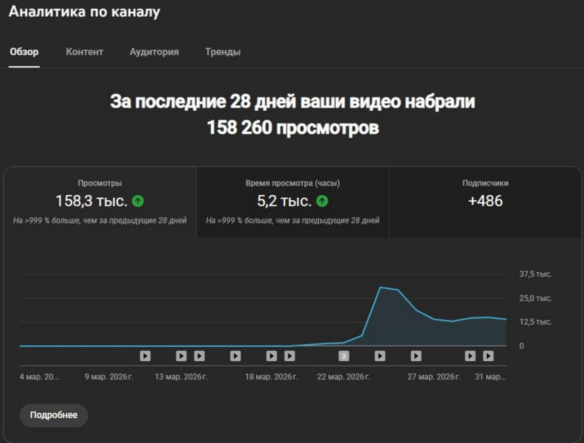 Несколько человек написали в личку - все нормально ли. Спасибо, приятно когда спрашивают. По проектам все хорошо. На менторинге сейчас 5 человек, двое в ближайшие дни подают на монетизацию, и еще одного на предмонету - набрали нужных подписчиков и часы просмотров за 2-3 недели. Параллельно занимаюсь лечением члена семьи - поездки, обследования, Москва туда-сюда. Писать в таком режиме тяжело, но выравниваюсь. Курс почти готов. Последние правки. О старте скажу когда будет готово. А у вас сейчас что в работе? Пишите в личку группы - читаю все. --- Закрыл офлайн-бизнес - ушел в YouTube. Рассказываю как это работает изнутри. Академия «YouTube от А до Я» - комплексная система запуска и роста ✉️ Написать в группу 📢 Подписаться ⚡️ Дать буст