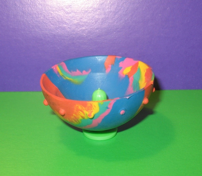 Эта игрушка интересна своим неожиданным поведением. Если, преодолев небольшое сопротивление резинового корпуса вывернуть ее наизнанку и, придав пальцами вращение в горизонтальной плоскости, уронить на пол то после падения, она с громким щелчком восстановит свою форму, и подпрыгнет неожиданно высоко. Высота этого подъема будет почти в два раза больше, чем той, с которой Вы игрушку уронили. Такой, на первый взгляд удивительный эффект объясняется высвобождением энергии упругости, дополнительный запас которой Вы сообщили резиновому корпусу игрушки, выворачивая его наизнанку.