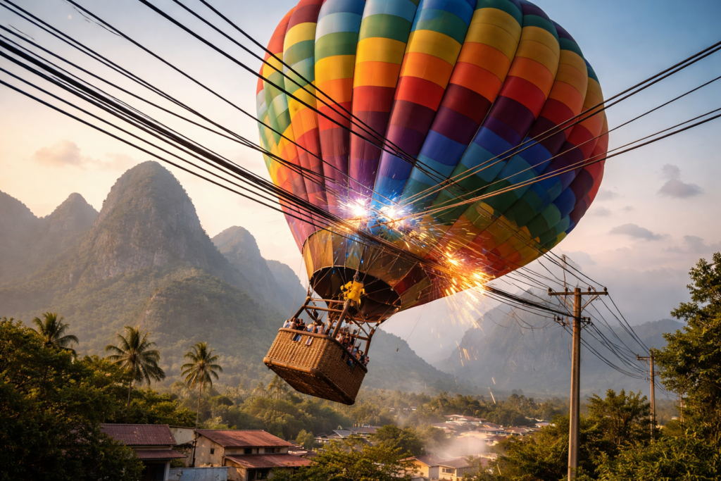 Воздушный шар задел провода и оставил без света тысячи домов в Лаосе
