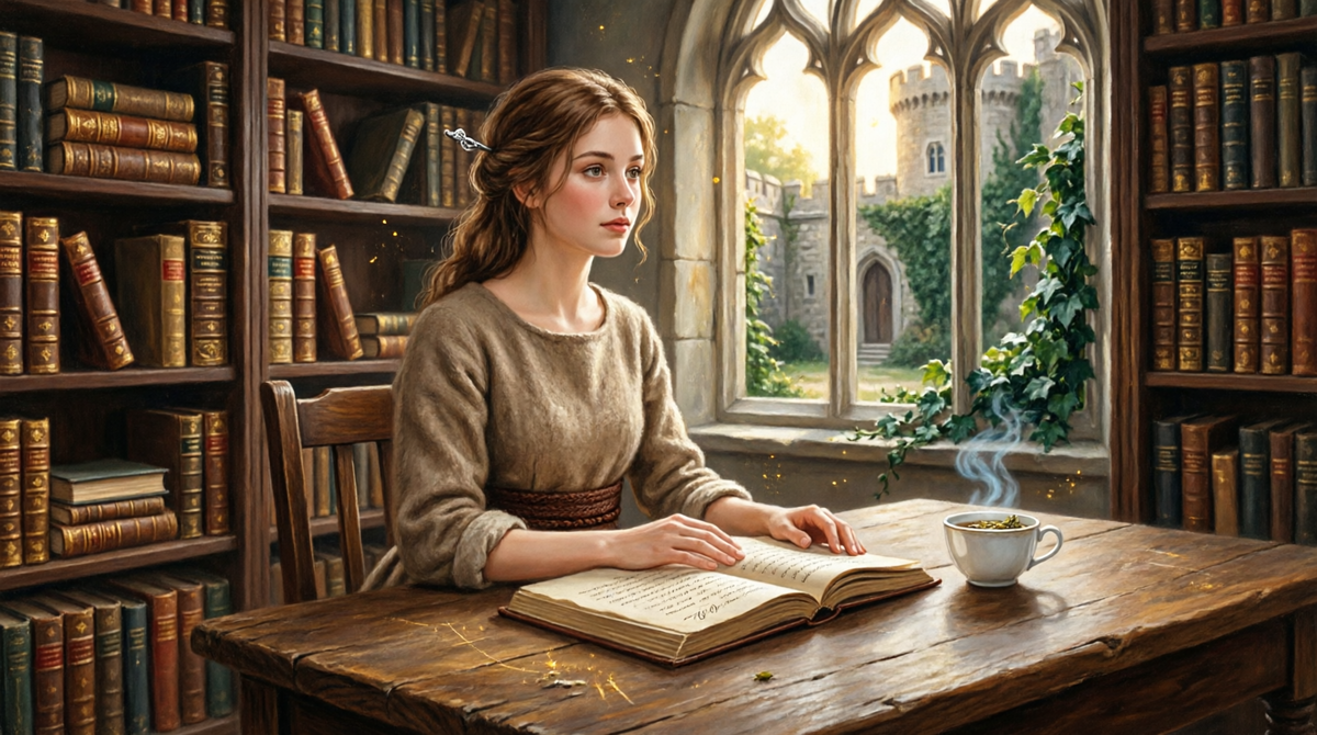 Также к этому времени она починила протекающую крышу над западным крылом, разобралась с системой отопления, сшила себе восемь платьев - одно нарядное, остальные практичные и написала подробный отчёт о состоянии замкового хозяйства, который был никому не нужен, но она его написала.