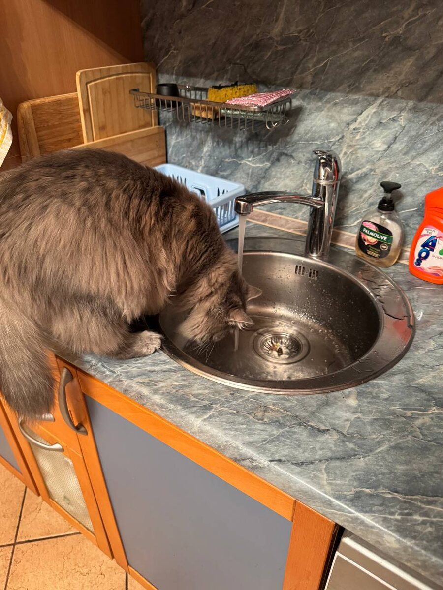 , Беатриче⚜️ грациозно запрыгивает всей своей тушкой в ванну/раковину и требовательно орет, пока ей кто нибудь не откроет кран🛁