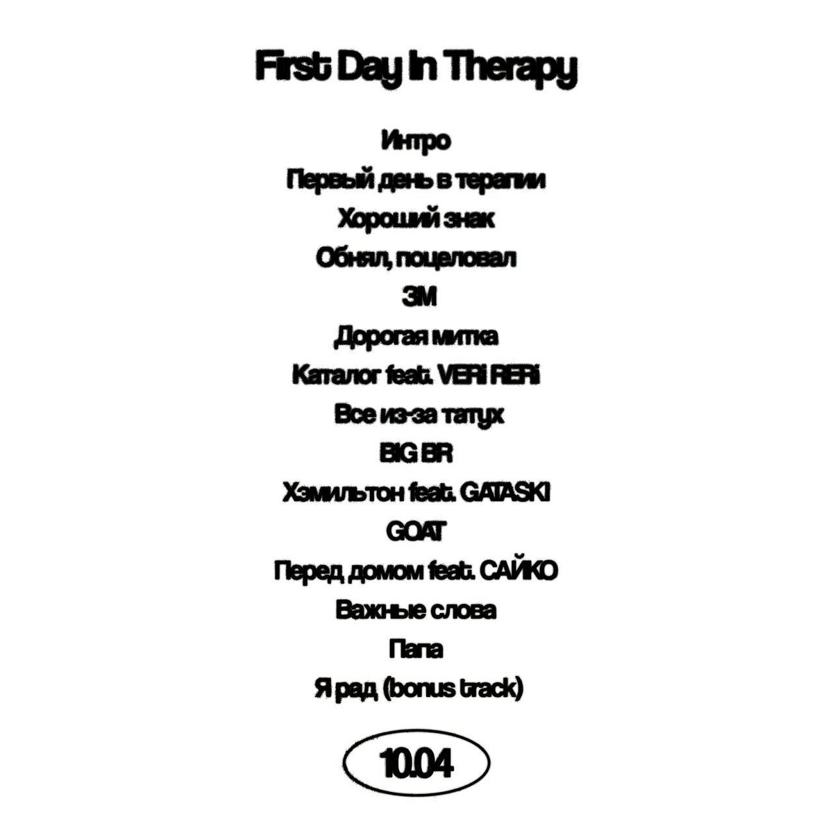 🔥Whole Lotta Swag выпустит новый альбом «First Day In Therapy» в следующую пятницу — 10 апреля Треклист: 1. Интро 2. Первый день в терапии 3. Хороший знак 4. Обнял, поцеловал 5. ЗМ 6. Дорогая митка 7. Каталог ft. VERi RERi 8. Всё из-за татух 9. BIG BR 10. Хэмильтон ft. GATASKI 11. GOAT 12. Перед домом ft. САЙКО 13. Важные слова 14. Папа 15. Я рад (bonus track) @mainstreamusic