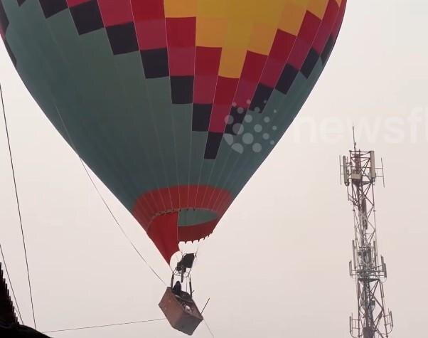 В Лаосе воздушный шар с туристами зацепился за линии электропередачи