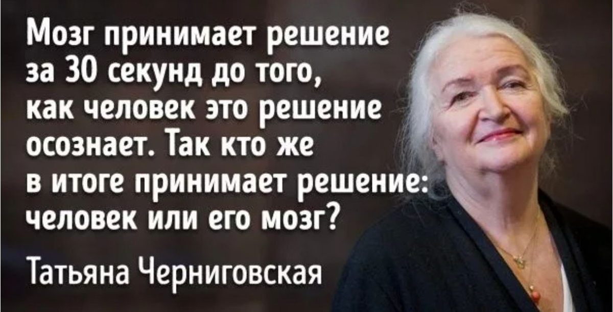 ): Испытуемых просили спонтанно сгибать палец, а ЭЭГ фиксировала активность мозга. Выяснилось, что мозг демонстрирует всплеск активности (т.н. «готовностный потенциал») за 0,5–1 секунду до осознанного решения, а в некоторых трактовках - до 30 секунд. То есть нейроны уже запустили процесс, пока человек думал, что выбирает. С заботой и любовью, ваш Душевный Wi-Fi ❤️