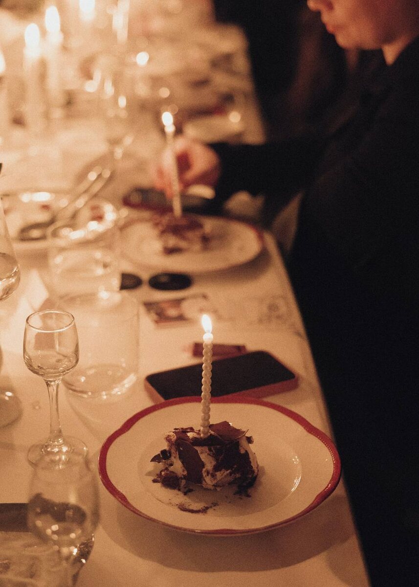 В этом проекте у нас была другая задача — создать тёплую, живую атмосферу, где гости не наблюдают со стороны, а проживают вечер вместе. Поэтому мы сознательно не перегружали пространство. Минималистичный декор здесь работает как инструмент. Он не отвлекает, а помогает сосредоточиться на людях и происходящем. Мы использовали свечи и детские фотографии гостей вместо карточек рассадки — простые приёмы, которые делают пространство более личным и вовлекающим. Мы в МАХ