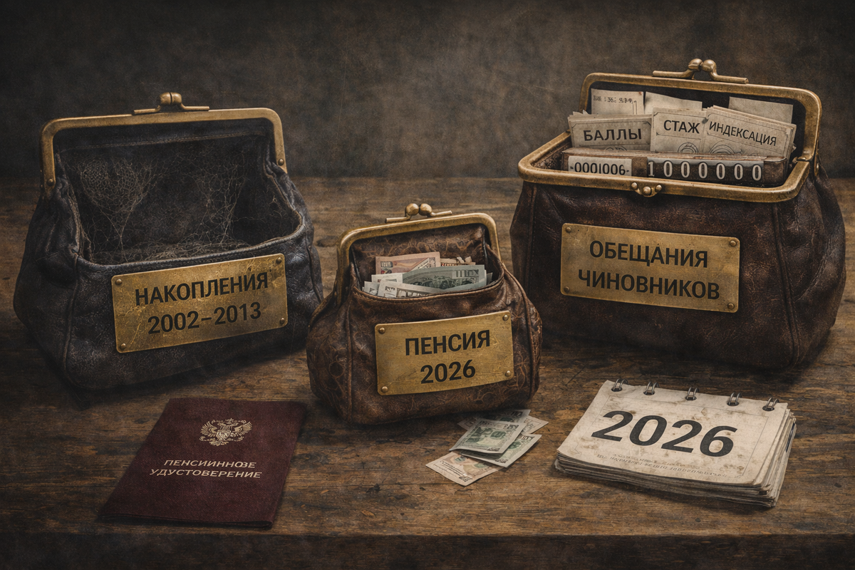 В 2002 году, когда затевали пенсионную реформу, чиновники обещали: «Копите сами — будете богатыми пенсионерами». В 2018-м, когда повышали пенсионный возраст, объясняли: «Так надо, иначе пенсий не будет вообще». В 2026-м пенсионеры получают 19–25 тысяч, работающие платят 30% от зарплаты в фонды, а накопительная система, которую так рекламировали, заморожена уже 12 лет.