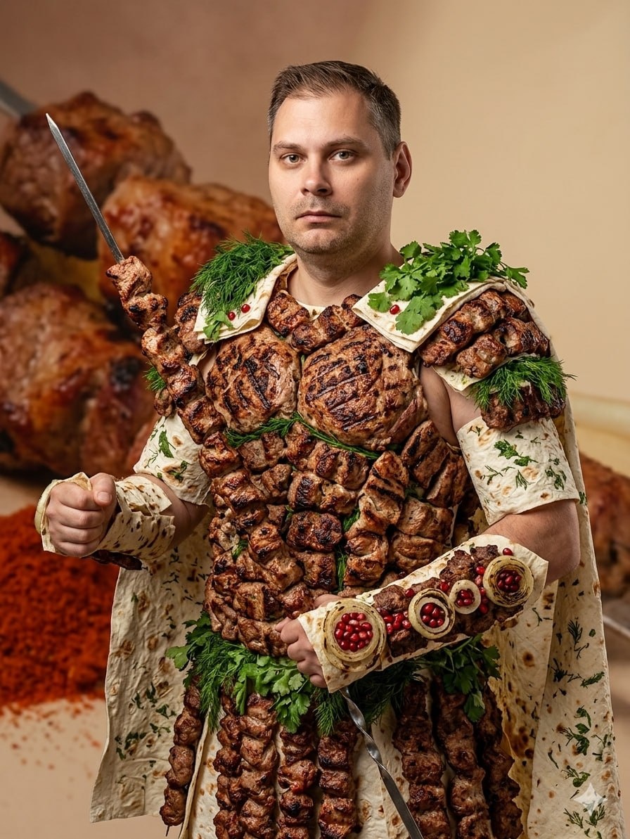 Промпт - одежда из еды - рыцарь майских праздников
