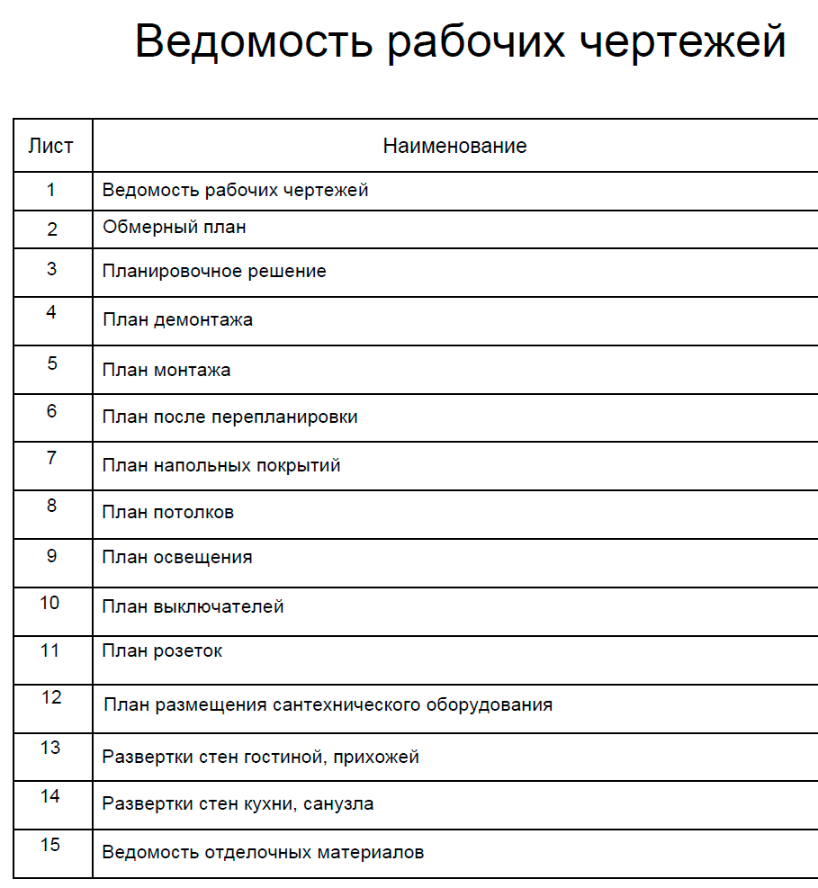 Все дизайнеры выдают одинаковый комплект чертежей.