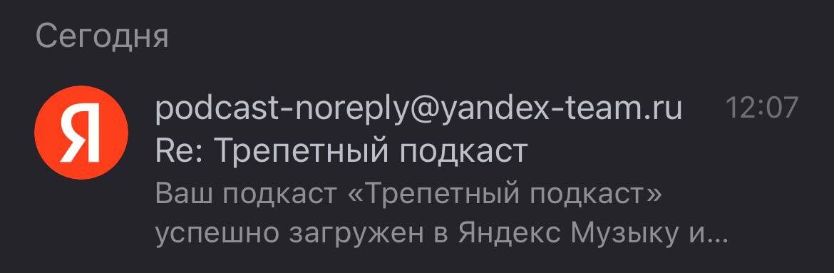 пришло уведомление от Яндекса, что подкаст скоро будет опубликован в Яндекс музыке