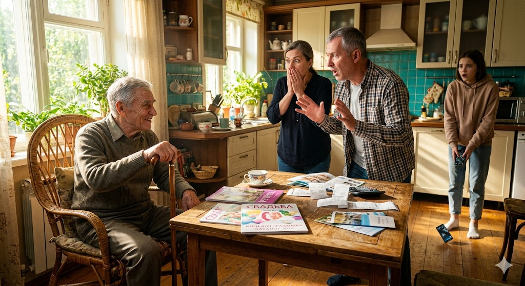 — Ну что, семья, — дед по-хозяйски расположился за столом. — Отдохнул душой. Теперь про свадьбу. Света, иди сюда.