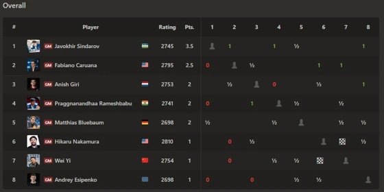 До очной встречи оба шахматиста делили первую строчку, имея в активе по 2,5 очка после трех партий. Исход поединка позволил Синдарову набрать 3,5 балла из 4 возможных и закрепиться на вершине турнирной таблицы. Соревнования продлятся до 15 апреля. Уже завтра, 3 апреля, нашему соотечественнику предстоит сыграть против Хикару Накамуры.