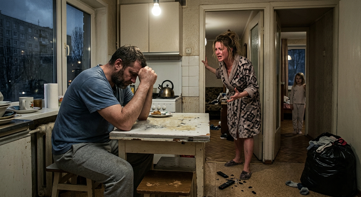 Серёга остался один на кухне. Сел на табуретку, уронил голову на руки. Перед глазами стоял пакет с его вещами. Он мысленно прикинул, сколько раз за четыре года это повторялось. Первый раз — она орала, что он не так подогрел молоко, а он посмел возразить. Второй раз — через месяц. Потом — через неделю. Потом — три раза в неделю, когда он был дома. Он сбился со счёта.