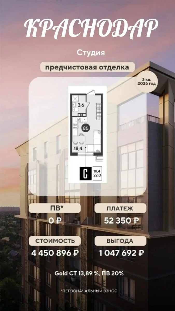 Квартиры без ПВ и со ставкой ниже рынка на весь срок кредитования на юге России 🔥 👍