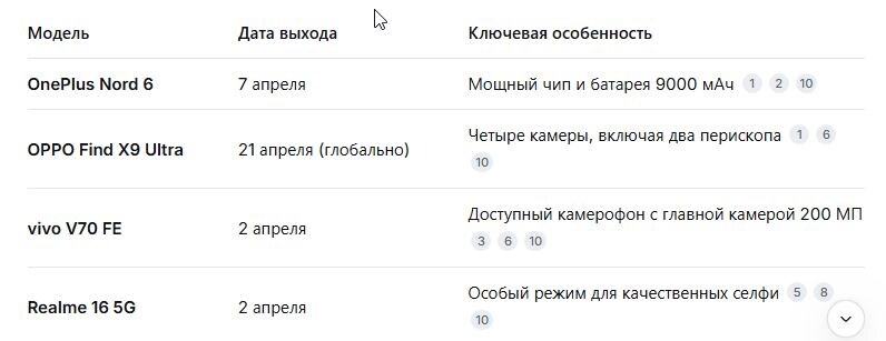 Апрель 2026 года обещает стать очень насыщенным на громкие премьеры. Производители готовят как флагманские камерофоны, так и мощные «середняки» с рекордными батареями. Вот топ-5 самых ожидаемых смартфонов, которые появятся в этом месяце: Этот аппарат, возможно, станет главной сенсацией месяца для тех, кто ищет баланс цены и возможностей. OnePlus делает ставку на автономность и производительность. Это первый "ультра-флагман" OPPO, который официально выходит на глобальный рынок, а не остается эксклюзивом для Китая. Устройство нацелено на завоевание титула лучшего камерофона года . Модель в новой линейке "Fan Edition" от vivo предлагает флагманские возможности камеры по более доступной цене . Оригинальная новинка, которая решает проблему качества фронтальных камер нестандартным путем. Xiaomi обновляет свою популярную линейку Note, делая упор на внешний вид. 💡 Если коротко: любители фотографии присматриваются к OPPO Find X9 Ultra и vivo V70 FE. Геймерам и фанатам автономности стоит ждать