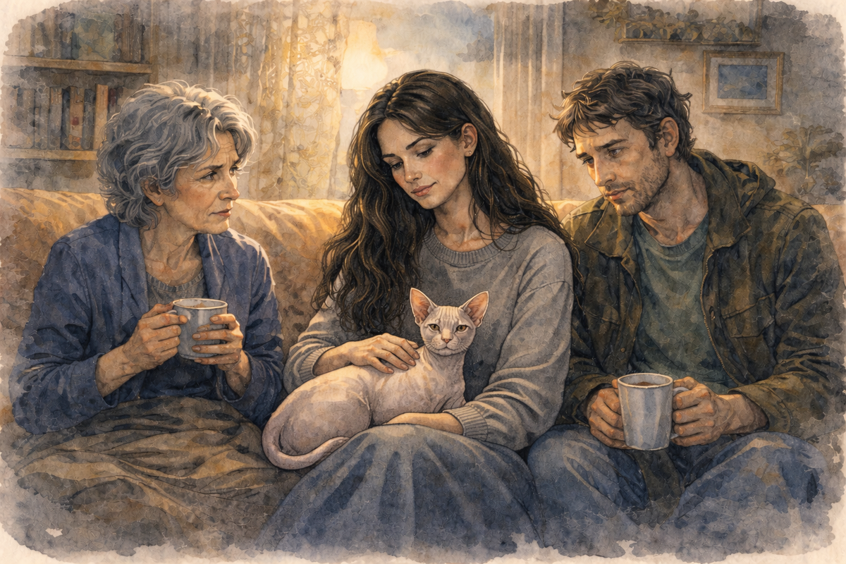 Я прошла в гостиную. Нина Семеновна и Сергей сидели рядом. Сначала они меня не узнали, но в их глазах появилось что-то живое. Усталость и смущение смешивались с... возвращением. Постепенно они начали вспоминать.