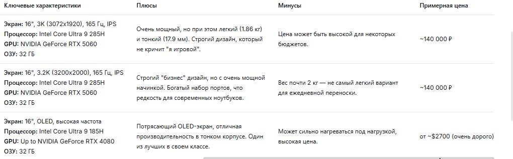 Выбор нового ноутбука, который одинаково хорошо подходил бы и для работы, и для игр, — это всегда поиск компромисса. Вам нужно найти баланс между производительностью, портативностью и ценой. Я проанализировала свежие обзоры и рейтинги за 2026 год и подготовила для вас несколько отличных вариантов. Чтобы вам было проще ориентироваться, я разделила их на две категории: универсальные (хороши для всего) и мощные игровые (максимальная производительность для самых требовательных игр и задач). Эти ноутбуки отлично подходят для профессиональных задач (программирование, дизайн, монтаж) и уверенно справляются с современными играми на высоких настройках. Они сочетают в себе производительность и относительно строгий дизайн, который не стыдно взять с собой в офис. Важный совет: Если вы покупаете ноутбук для работы и игр, игнорируйте модели только со встроенной графикой (как у большинства ультрабуков). Для игр вам обязательно нужна дискретная видеокарта уровня NVIDIA GeForce RTX 4050/4060 или выше.