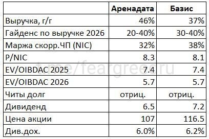 Отчет Аренадата за 2025 и сравнение с Базисом Аренадату в данном обзоре я сравнил с Базисом, они одинаковы по масштабу и являются лучшим выбором в секторе разработчиков ПО (не путать с технологическими компаниями типа Яндекс, Хедхантер, Циан). Темпы роста и гайденс на 2026 тоже схожи (правда у Аренадаты более широкий гайденс 20-40%). Учитывая одинаковый мультипликатор EV/EBITDAC, ожидаемые темпы роста и одинаковую дивдоходность, можно сказать что обе фирмы оценены справедливо по отношению друг к другу. В IPO Базиса я не ходил, на тот момент Аренадата лежала на дне, с тех пор обе котировки хорошо выросли. Продолжаю держать Аренадата на 5% портфеля. 🎓 Пояснение про мультипликаторы ⬇️ Софтовые компании создают продукт трудом программистов (в отличие от большинства фирм реального сектора, которые покупают оборудование, здания и т.п.), но поскольку ПО приносит прибыль не только в текущем периоде, а имеет жизненный цикл - то часть расходов на разработку капитализируется, образуя актив