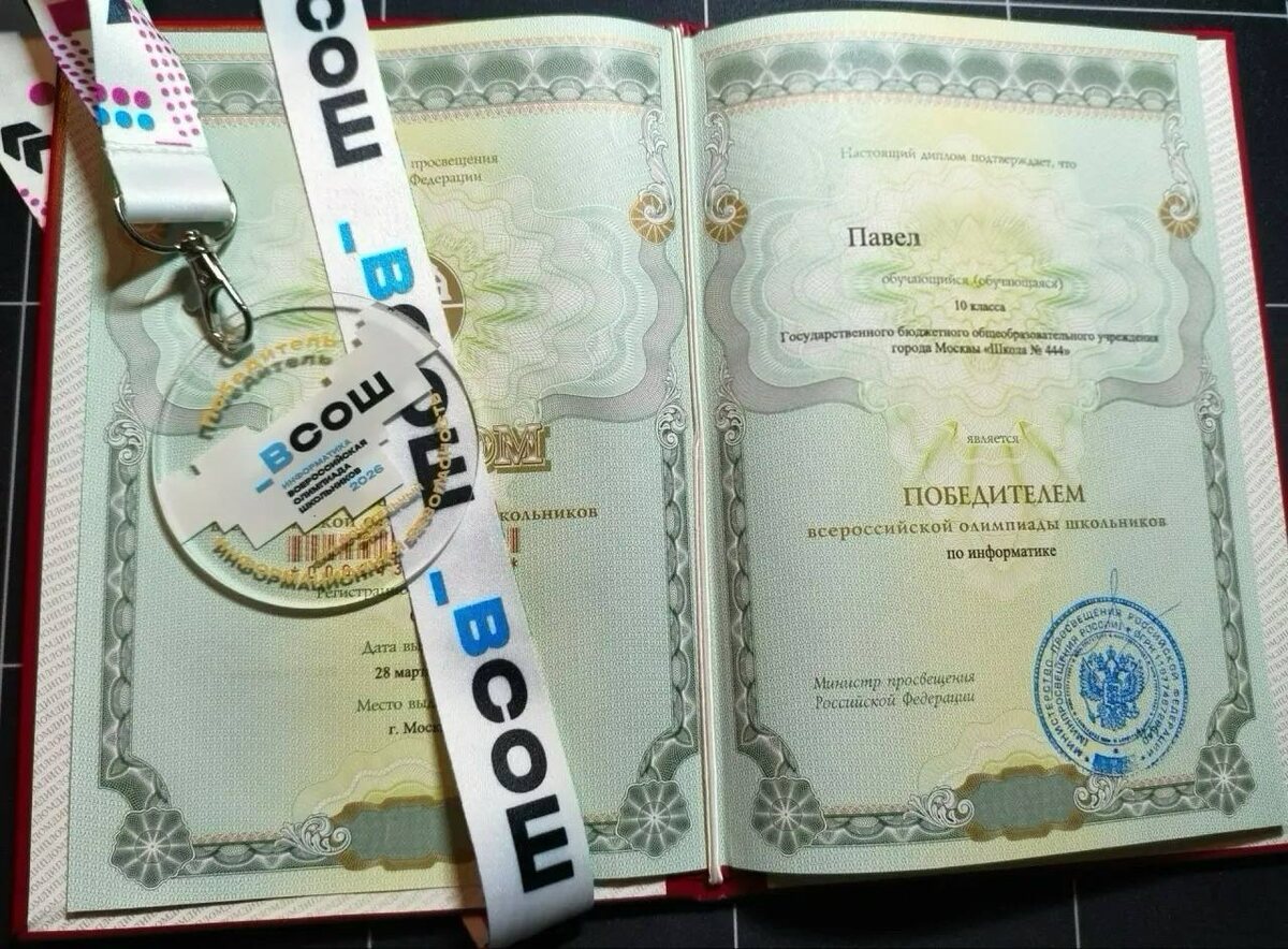 🏆Абсолютный победитель ВсОШ по информационной безопасности — Павел, 10 «И» класс