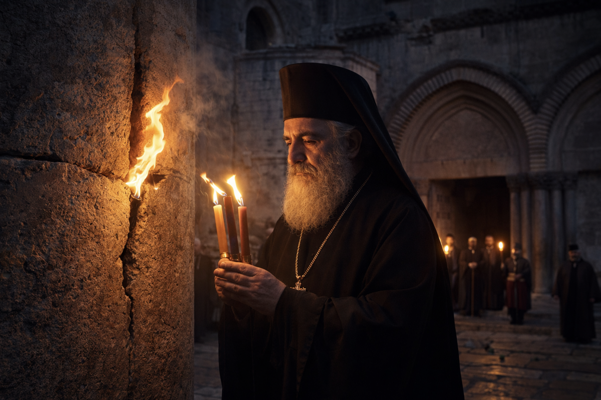 В 1579 году православного патриарха не пустили в храм Гроба Господня. Армянские священники договорились с турецким градоначальником Иерусалима перехватить право на получение Благодатного огня. Патриарх остался стоять на улице. А потом, если верить преданию, колонна у входа треснула — и огонь сошёл прямо сквозь камень, зажёг свечи в его руках. Трещина на колонне видна до сих пор. Историю можно считать легендой, но колонна — вполне реальная.