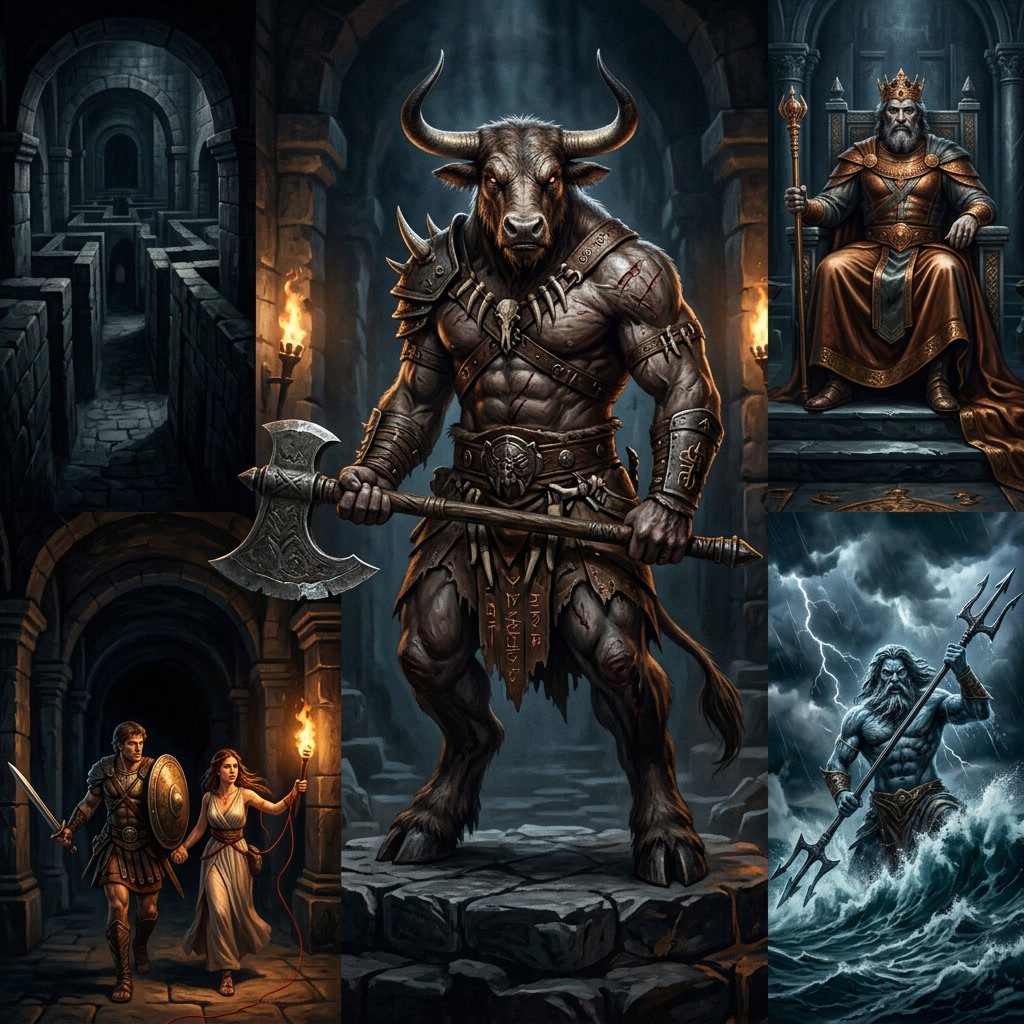 История о Минотавре — один из самых известных и одновременно самых жутких мифов Древней Греции. Это не просто сказка про чудовище, а история о власти, страхе, жертвах и человеческой хитрости. Согласно мифу, на острове Крит правил царь Минос. Чтобы доказать, что он должен стать царём, он попросил у бога моря Посейдона послать ему священного быка. Бог выполнил просьбу, но Минос не захотел приносить быка в жертву и оставил его себе. Посейдон разгневался и решил наказать царя. Он сделал так, что жена Миноса влюбилась в этого быка. В результате родилось существо — Минотавр, чудовище с телом человека и головой быка. Минотавр был агрессивным и опасным, поэтому царь приказал построить огромный лабиринт, чтобы спрятать его. Лабиринт построил знаменитый мастер Дедал. По легенде, лабиринт был настолько сложным, что человек, попав внутрь, уже не мог найти выход. Туда и поместили Минотавра, а чтобы чудовище не умерло, ему приносили человеческие жертвы. В одном из мифов рассказывается, что Афины