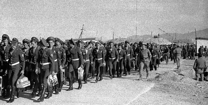 Так это ты нас в Кундуз забрасывал 05.05.82г. с Кокайты. А на дембель по другому. С Кундуза в Хайратон, тоже вертушками - МИ-8 (10.11.83г.- первая партия, это я хвастаюсь), в Хайратоне на машины и через мост на погранпост, здесь проверка и досмотр, ничего ни у кого не взяли - только очень подозрительно овчарка обнюхивала, только ее и помню , а как погранцы проверяли , даже в памяти не отложилось, дипломат на стол , открыл, закрыл и пошел.