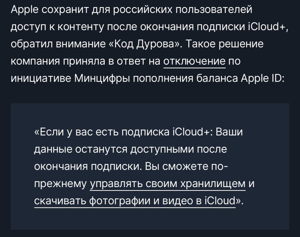 ⚡️⚡️⚡️ Apple сохранит подписки iCloud+ для россиян навсегда — компания сделала исключение для юзеров из РФ
