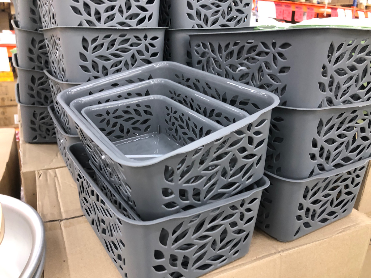 Всем привет! В магазине Светофор сегодня снова отличный ассортимент! Привезли наборы корзин Leaves. В этом наборе 3 корзины разного размера. Они пластиковые, серого цвета. Корзины перфорированные. Производство Россия. Цена 268 рублей.